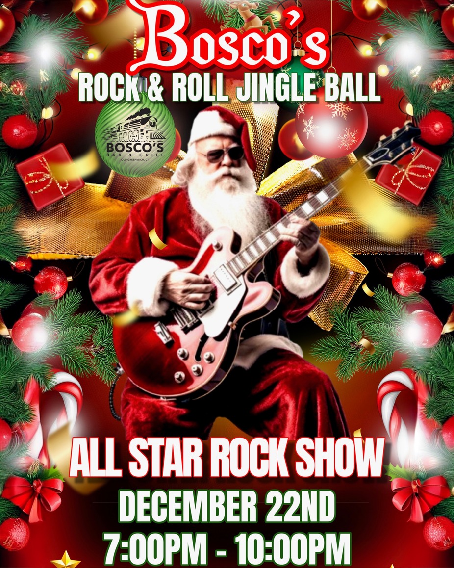 Get ready to rock around the Christmas tree! Bosco’s Bar & Grill is hosting an All-Star Musical Lineup of the best local talent for one unforgettable night of high-energy rock ‘n’ roll and holiday cheer.