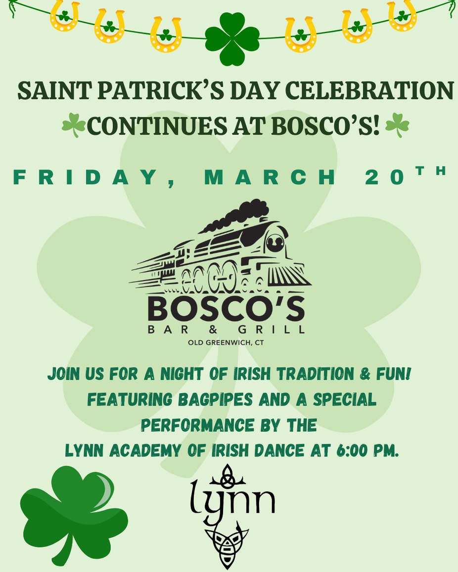 St. Patrick’s day festivities continue at Bosco’s!! The Lynn Academy joins us for some ☘️step dance! @lynn_academy